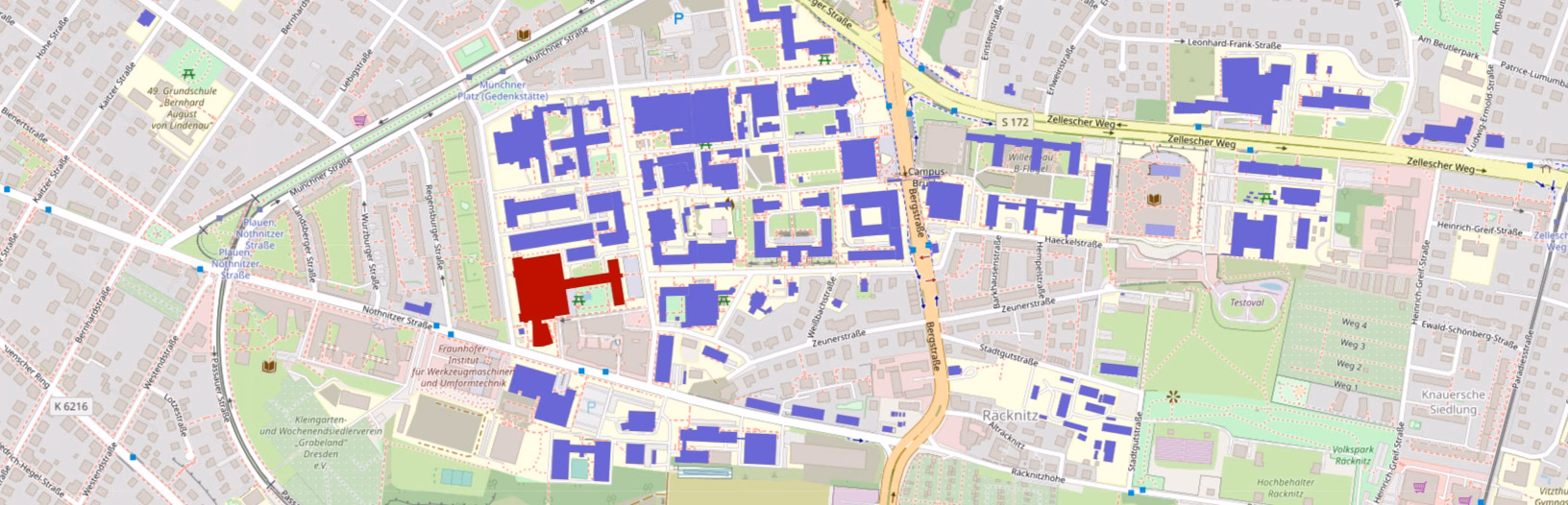By car From freeway (“Autobahn”) A4 change to A17 (direction “Prag”). Leave at exit “Dresden-Südvorstadt”. Drive towards Dresden city. After approx 2500m go left into the “Nöthnitzer Straße” (direction “Plauen”). After approx. 500m you have reached our building Barkhausenbau on the right side of the road.